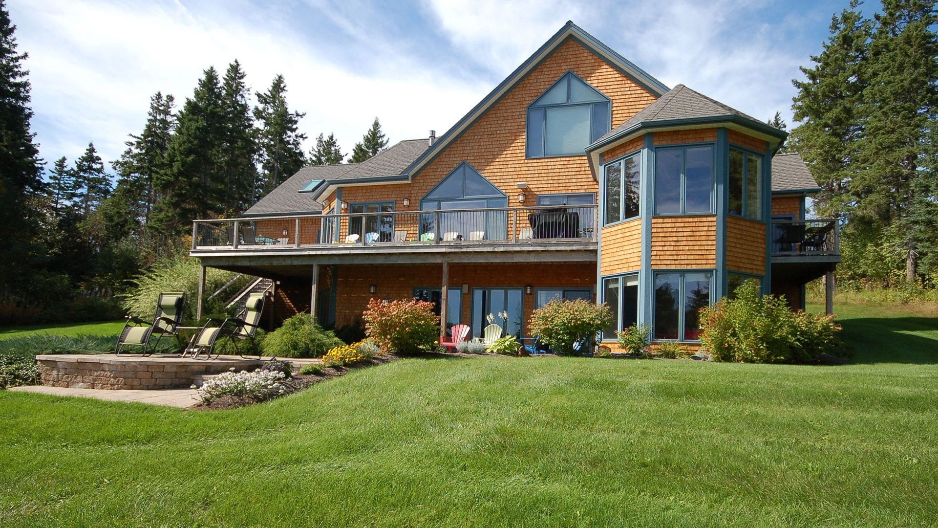 Eagles View Villa is a stunning waterfront vacation home. We’re located on more than two acres of private forested land overlooking the picturesque Trout River and the hills of trees and farmers’ fields beyond. Three levels of luxury living featuring five bedrooms and four and a half baths, the house is great for large groups. Situated in North Granville, just minutes from Cavendish, the location is perfect for beach goers and golfers alike.