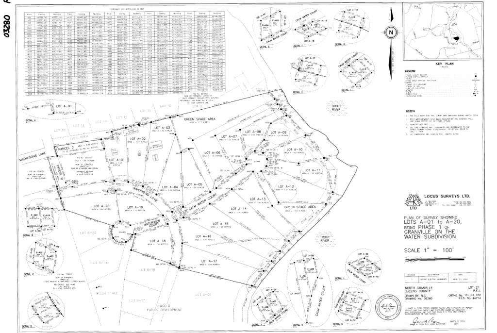 Owners in Granville on the Water are blessed with large lots that are a minimum 1 acre in size. (a couple are just shy of an acre … others are up to 3.2 acres !) . For reference, here are street frontages ( feet ) and the Lot Sizes ( acres ). See site plans…